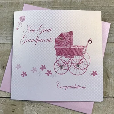 WHITE COTTON CARDS Grandparents Congratulations, Pink Pram Handmade New Baby Girl Card, BD187G