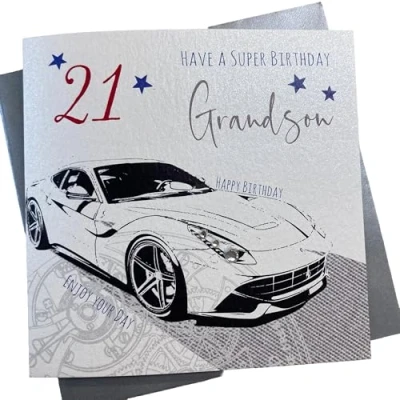 White Cotton Cards"Grandson 21 Have A Super Birthday" Handmade 21st Birthday Card, LLR21 GS,blackgreygreen, 16 x16cm