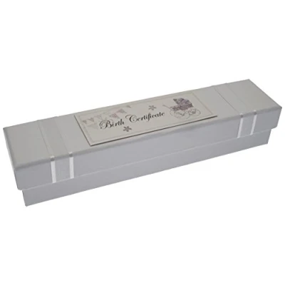 Birth Certificate Holder Measures approximately: 22.5 x5 x 4.3 cm Handmade From White Cotton Cards An Ideal Present for a Babies Treasured Birth Certificate Solid Box with Lid