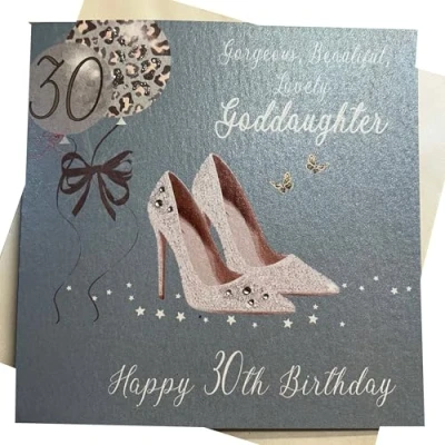 WHITE COTTON CARDS Handmade Gorgeous, Beautiful, Lovely, Goddaughter Happy 30" Neon Range Code 30th Birthday Card, White, N322 30