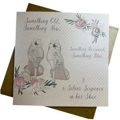 White cotton cards Handmade Something Old New Wedding Card,