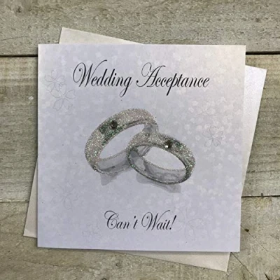 white cotton cards Handmade Wait Wedding Bands Acceptance Card, White, PD257, Pack of 1