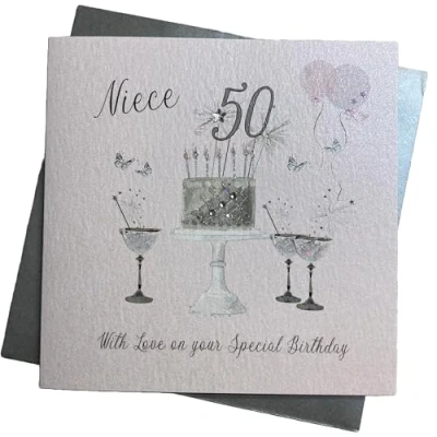White Cotton Cards Happy 50th Birthday Card Niece Champagne Glasses Pink Roses SS42 NIE50,White / Cream,16cm x 16cm