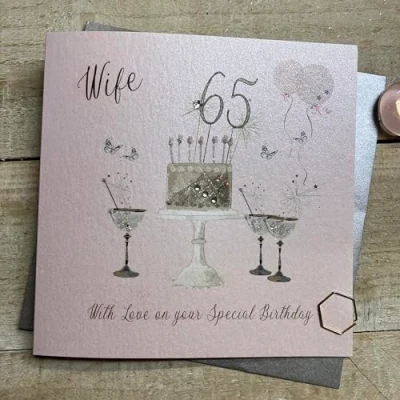 WHITE COTTON CARDS Happy 65th Birthday Card Wife Champagne Glasses Pink & Gold Sparkly Cake SS42 W65