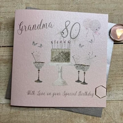 WHITE COTTON CARDS Happy 80th Birthday Card Grandma Champagne Glasses Pink & Gold Sparkly Cake SS42 GM80