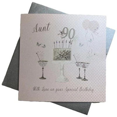 WHITE COTTON CARDS Happy 90th Birthday Card Aunt Champagne Glasses Pink Roses SS42 A90,16cm x 16cm