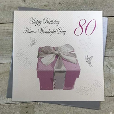 White Cotton Cards Happy Birthday Handmade Large 80th Card, XPB80