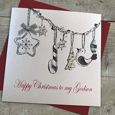 WHITE COTTON CARDS Happy Godson, Handmade Christmas Card (Code EX400)