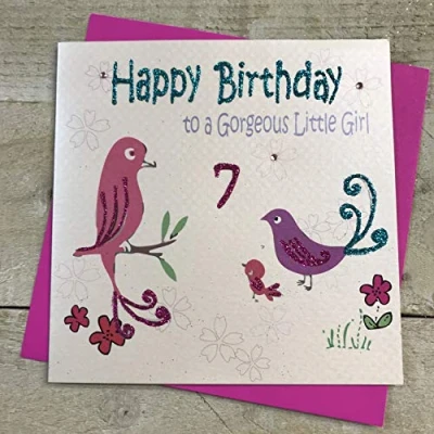 WHITE COTTON CARDS Happy Gorgeous Little Girl 7, Handmade 7th Birthday Card (Birds)