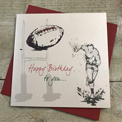WHITE COTTON CARDS Happy Handmade Birthday Card (Rugby)