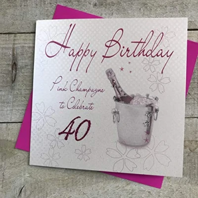 WHITE COTTON CARDS, Happy Pink Champagne to Celebrate 40" Handmade 40th Birthday Card, White, wb75 40