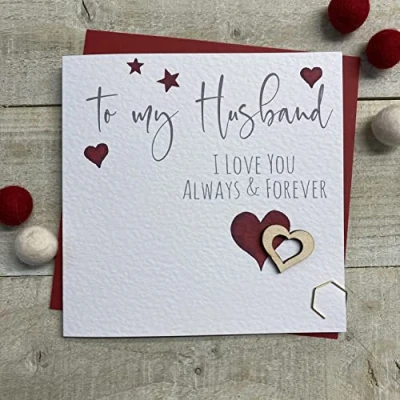 WHITE COTTON CARDS HUSBAND I LOVE YOU ALWAYS & FOREVER HEARTS LARGE VALENTINE CARD, HANDMADE (XS V18)