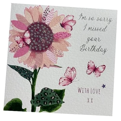 WHITE COTTON CARDS I'm so Sorry Love, Handmade Missed Birthday Card (Roses)