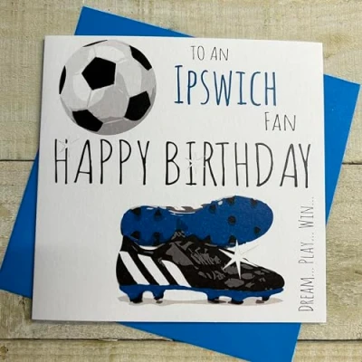WHITE COTTON CARDS IPSWICH FOOTBALL FC FAN, BIRTHDAY CARD (FFP103), 16cm x