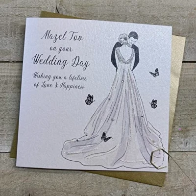 WHITE COTTON CARDS JEWISH WEDDING CARD COUPLE, HAND FINISHED (D185)