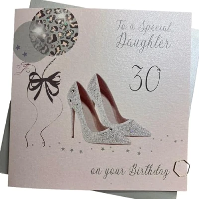 White Cotton Cards Large Glitter Ball & Shoes, 30 To a Special Daughter On Your Birthday Handmade 30th Card, X30D