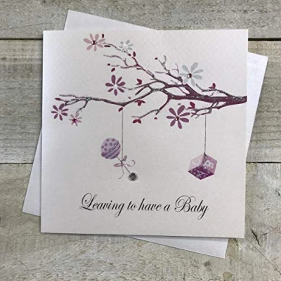 white cotton cards Leaving To Have A Baby Handmade Card, PD92