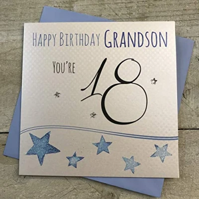 WHITE COTTON CARDS LLB18 GS"Happy Birthday Grandson. You're 18" Handmade 18th Card