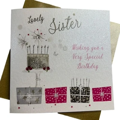 WHITE COTTON CARDS Lovely Sister Wishing You a Special Birthday Handmade Card, Pink, wb190,16cm x 16cm