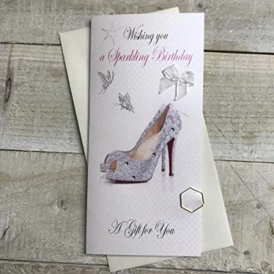 white cotton cards Money Wallet, Wishing Birthday A Gift for You, Code WBW16 (Sparkling Shoes), 21 x 10 cm, White,