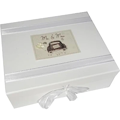 White Cotton Cards Mr and Mrs Wedding Large Keepsake Box Car Range