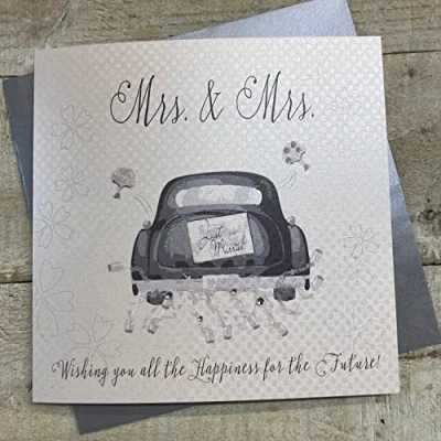 white cotton cards Mrs Handmade Wedding Card (Civil Partnership, car), BD78F