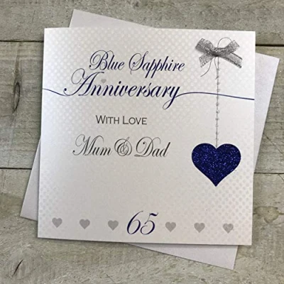 White Cotton Cards Mum & Dad 65th Blue Sapphire Wedding Anniversary Handmade Card Love Lines, 16cm x