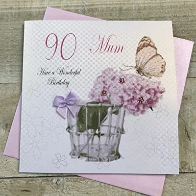 WHITE COTTON CARDS Mum Have a Wonderful 90th Birthday Vintage Handmade Card, White, pdm90,16cm X 16 cm