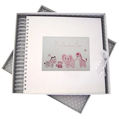 Beautiful handmade Pink, My Boasting Book, Toys, Animals Design card & memory book Spiral bound allowing the book to expand and be filled with cards and other special memories Includes approximately 40 blank pages and presented in a white gift box with a lid Hand finished with gorgeous diamantes and sparkling glitter The perfect gift for your special occasion