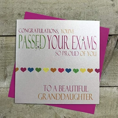 WHITE COTTON CARDS Neon Range, Congratulations You've Passed Your Exams So Proud of YouTo A Beautiful Granddaughter Handmade Card, N8 GD