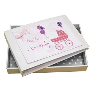 White Cotton Cards 'New Baby' Mini Photo Album, Pink Pram (DTP1T)