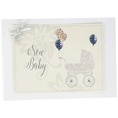 White Cotton Cards 'New Baby' Mini Photo Album, Silver Pram (DTS1T)
