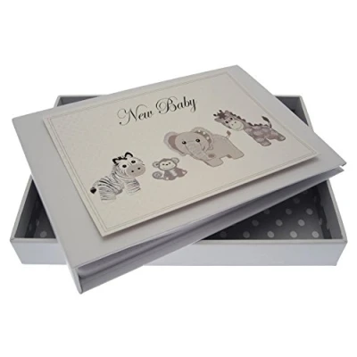 Beautiful handmade New Baby Silver Toys photo album Presented in a white gift box with a clear perspex lid Includes 16 pockets to hold up to 32 photos Hand finished with gorgeous diamantes and sparkling glitter The perfect gift for your special occasion
