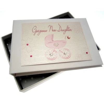 White Cotton Cards New Daughter Tiny Photo Album (Pink Pram)