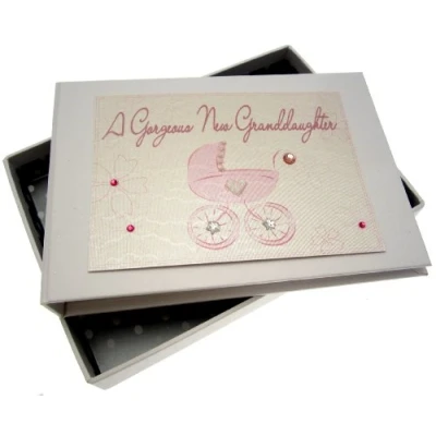 White Cotton Cards New Grand Daughter Tiny Photo Album (Pink Pram)