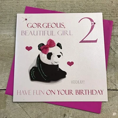 White Cotton Cards NP2"Panda Gorgeous Beautiful Girl 2 Have Fun On Your Birthday" Handmade 2Nd Birthday Card