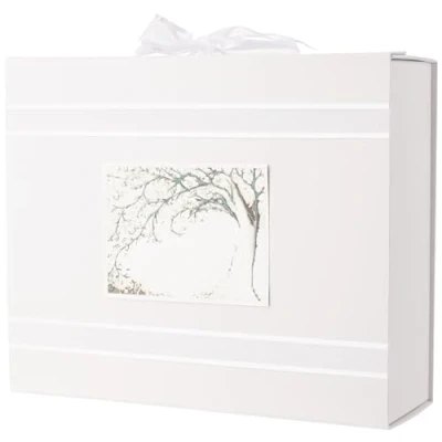 White Cotton Cards Open Tree Design, Large Keepsake Box, Board, 27.2 x 32 11 cm