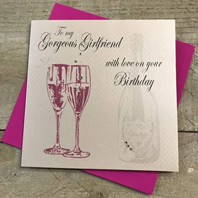 White Cotton Cards PD218 "Pink Champagne to My Gorgeous Girlfriend with Love On Your Birthday" Handmade Birthday Card