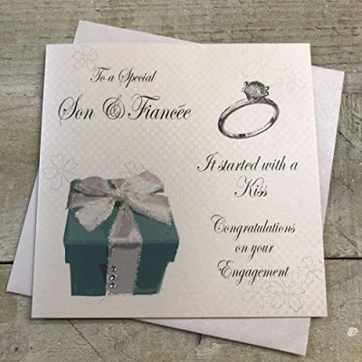 White Cotton Cards PD223"to A Special Son and Fiancée It Started with Kiss Congratulations On Your Engagement" Handmade Engagement Card,greenbeige,16x16 cm
