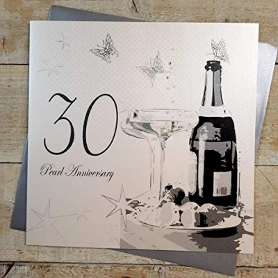WHITE COTTON CARDS Pearl Wedding, Large Handmade 30th Anniversary Card (Champagne & Chocolates)