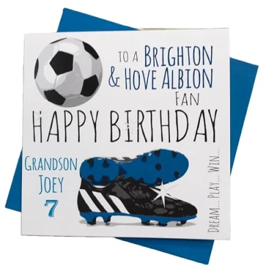 WHITE COTTON CARDS PERSONALISED Brighton and Hove Albion FC Football Club Fan Birthday Card (46 PER)