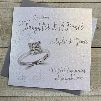 WHITE COTTON CARDS PERSONALISED ENGAGEMENT CARD. ANY RELATION. DAUGHTER & FIANCÉ. SQUARE PRINCESS CUT RING DESIGN. Handmade (P22 99 D XP22 D)