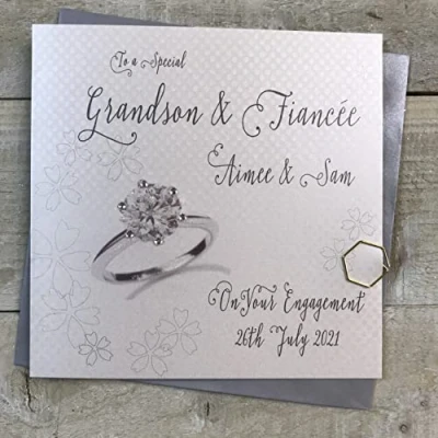 WHITE COTTON CARDS PERSONALISED GRANDSON & FIANCEE ENGAGEMENT RING Handmade (P20 38b XP20 38b)