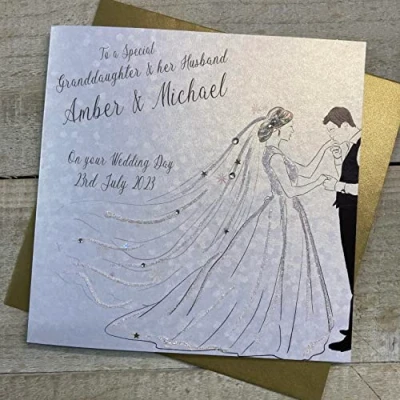 White Cotton Cards PERSONALISED WEDDING CARD, TO A SPECIAL GRANDDAUGHTER & HUSBAND, COUPLE KISSING DESIGN, HAND FINISHED (X) P23 1 GD