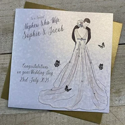 White Cotton Cards PERSONALISED WEDDING CARD, TO A SPECIAL NEPHEW & WIFE, COUPLE DESIGN, HAND FINISHED (X) P23 4 NEP