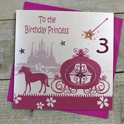 WHITE COTTON CARDS Pink, Carriage, Princess 3" Handmade Girls 3rd Birthday Card, GL233 3