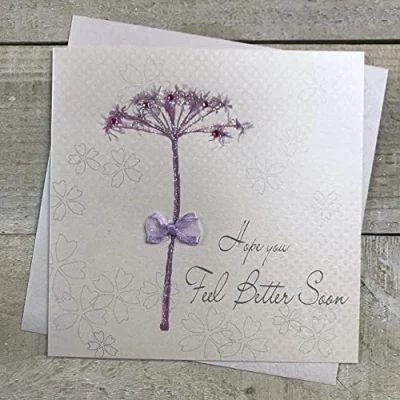 WHITE COTTON CARDS Pink Dandelion Hope You Feel Better Soon Handmade Get Well Card, WB264