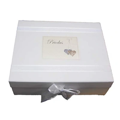 White Cotton Cards "Priodas" Sparkling Love Hearts Design, Welsh Wedding Large Keepsake Box (WLLH2X)