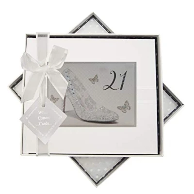 White Cotton Cards SHU21G Silver Shoe Design Age 21 Birthday Guest Book