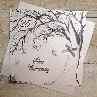 WHITE COTTON CARDS Silver, Handmade 25th Anniversary Card, Code PA25